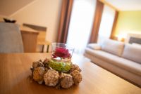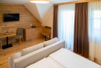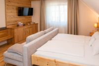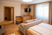 Unsere mit Massivholz Zirbenbetten und Eichenholz Möbel eingerichteten Zimmer sind mit eigenem Vorraum, Bad & WC, SAT-TV und Teletext, WLAN, Gästekühlschrank, Zimmersafe, gemütliches Sofa & Haarfön ausgestattet sowie klimatisiert.